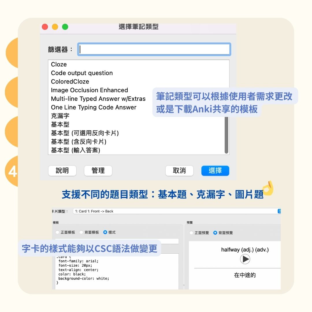 4.支援不同的題目類型(如:基本題、克漏字、圖片題等)